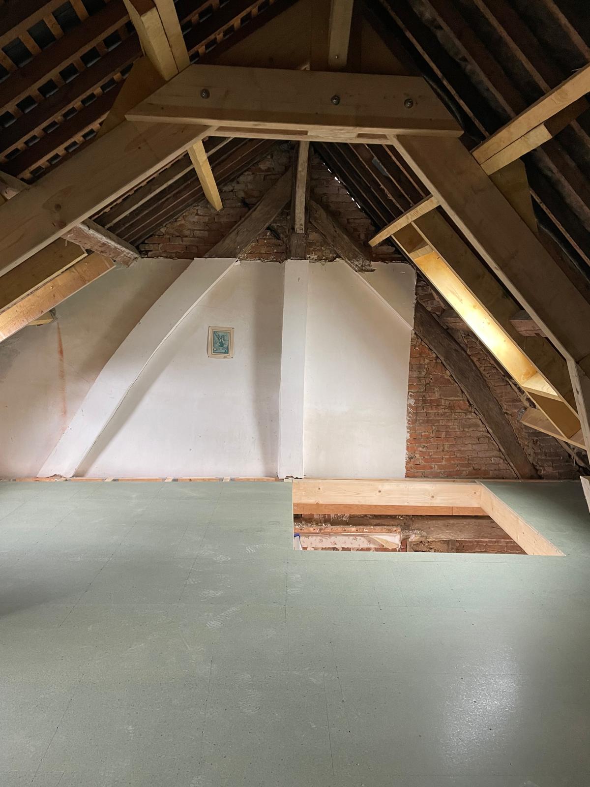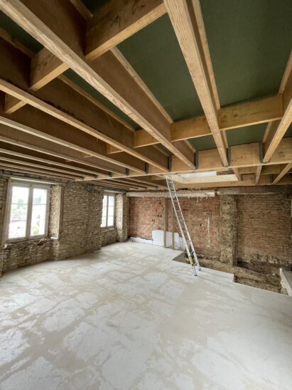 L’accent a été mis sur l’isolation avec de la membrane d’étanchéité ; l’ensemble des menuiseries remplacées. Tout le second œuvre est prévu d’être refait à neuf. Un poêle à granulé servira de mode de chauffage. La production d’eau chaude sera assurée par un ballon thermodynamique.