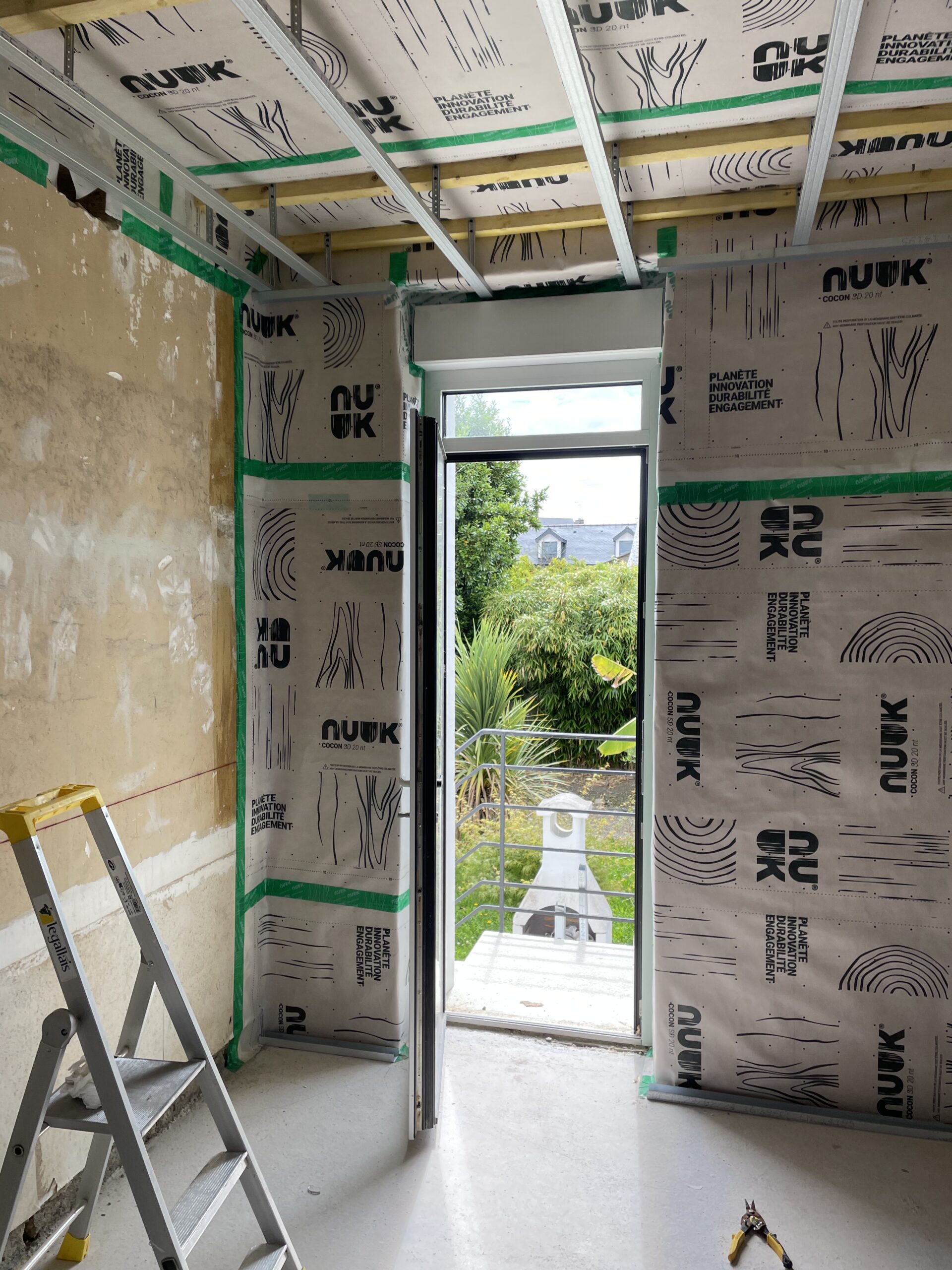 • Isolation laine de bois + membranes, menuiseries intérieures