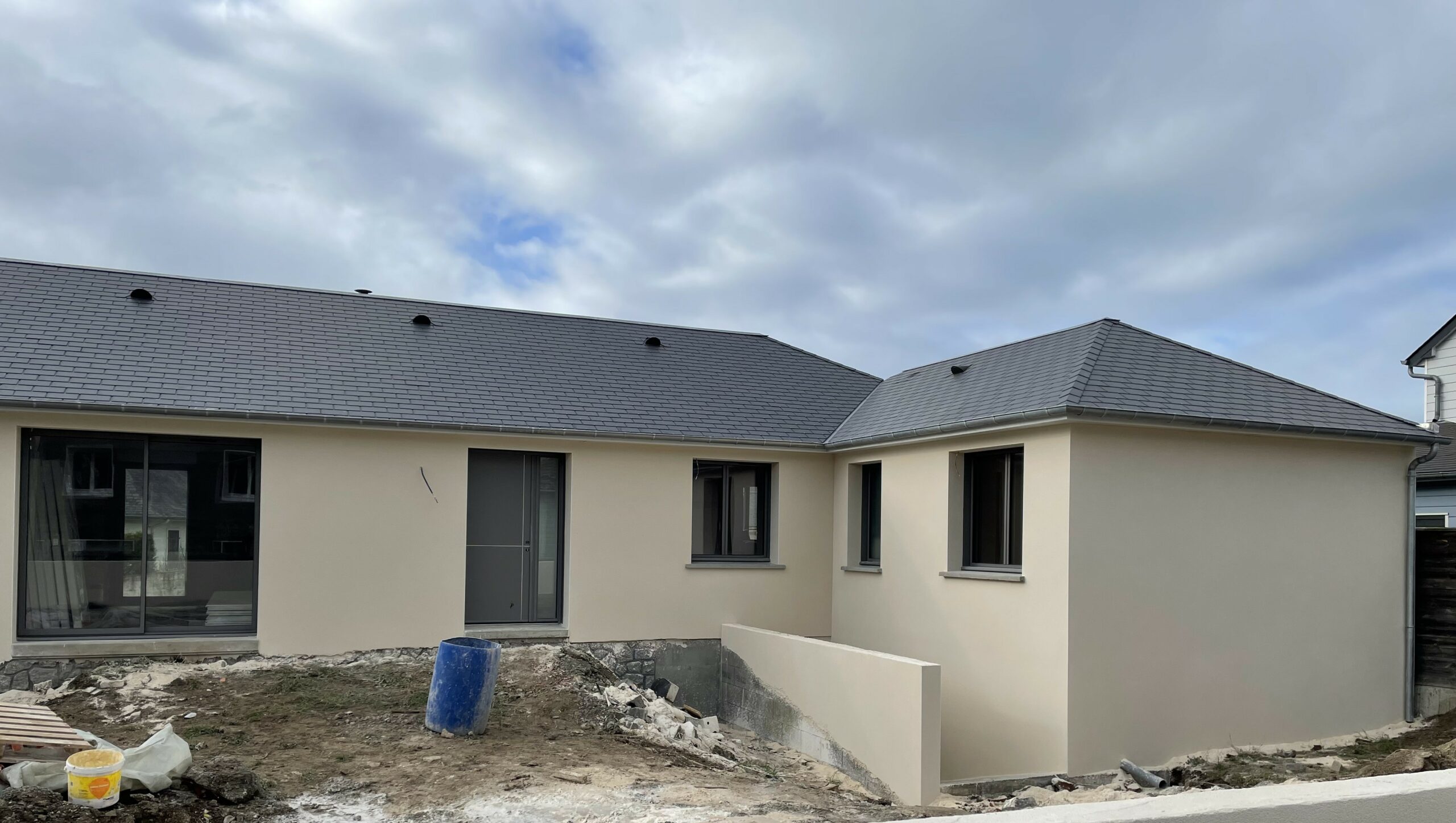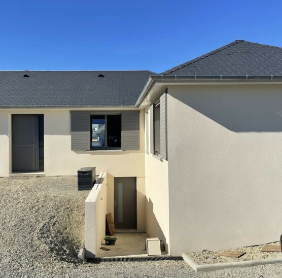 Nous avons donc démoli la totalité des cloisons de distribution existantes et repensé entièrement l’aménagement intérieur. L’extension de 39m² accueille 2 chambres et une salle d’eau à l’étage et un sous-sol. Elle a été réalisée parpaings.