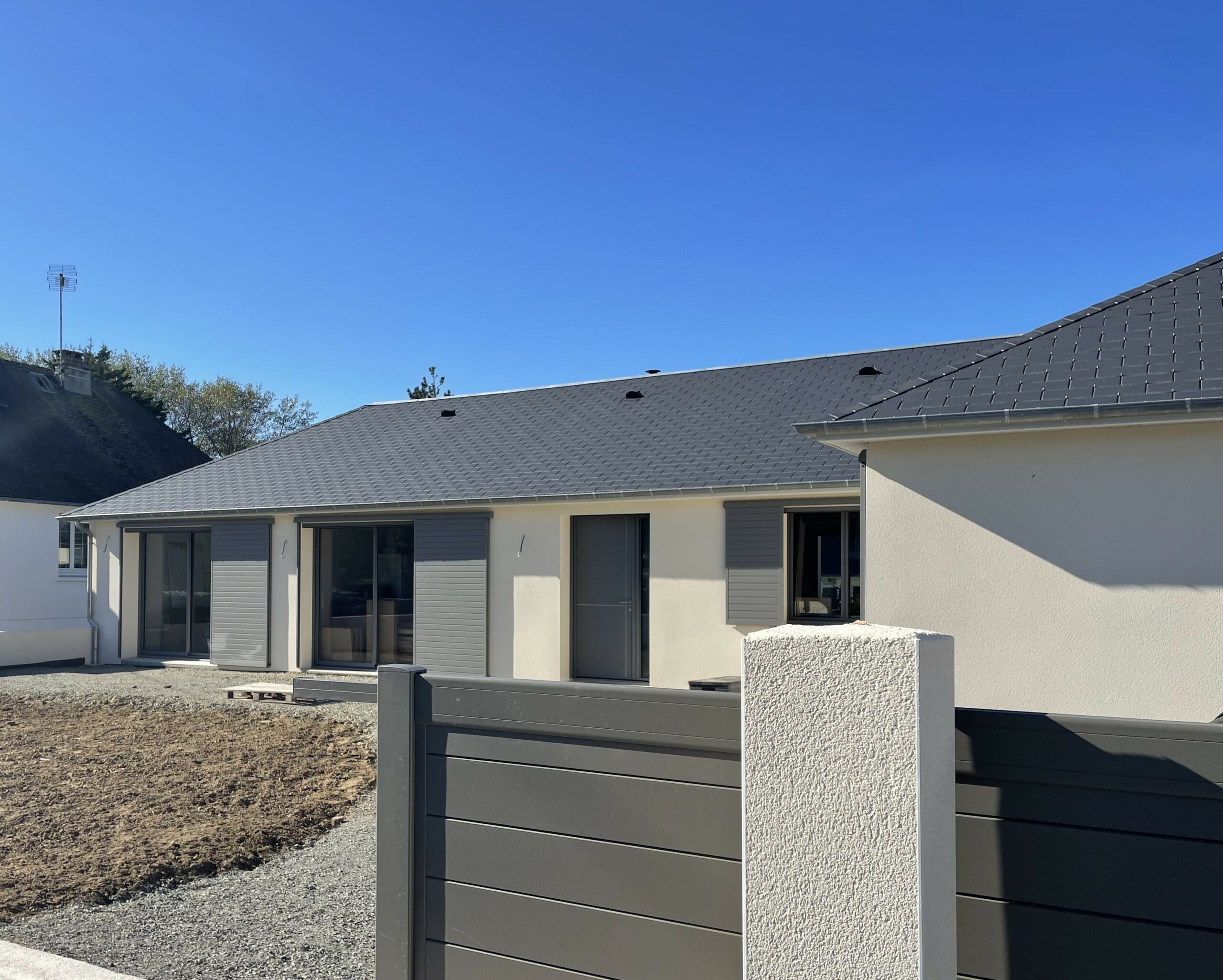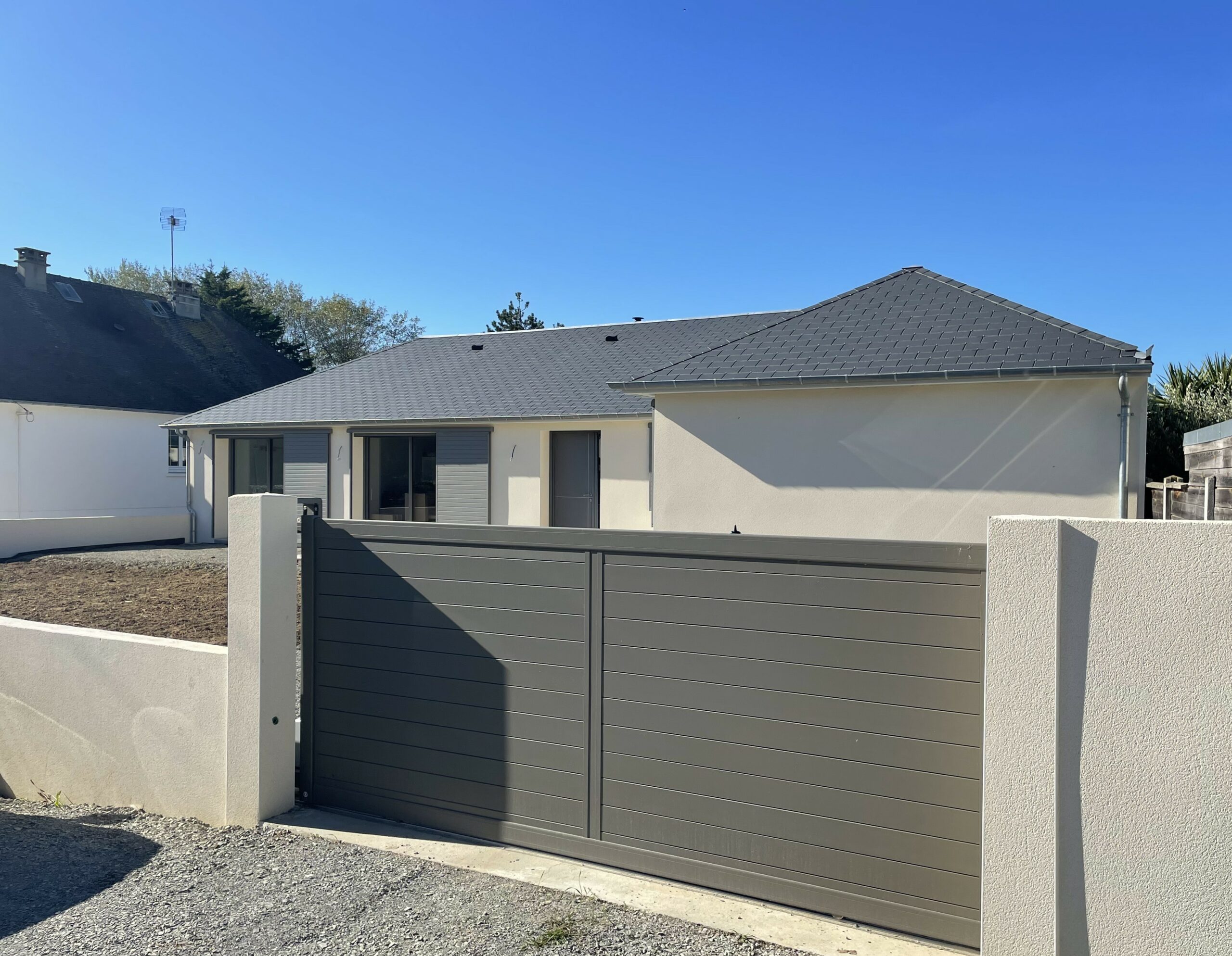 La vraie valeur ajoutée, sur cette rénovation ce sont les volets coulissants motorisés. Ils apportent une touche de modernité, mais aussi sécurité, confort thermique et acoustique.