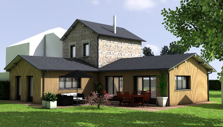 Création de 2 extensions, structure parpaings, habillage d’un bardage vertical