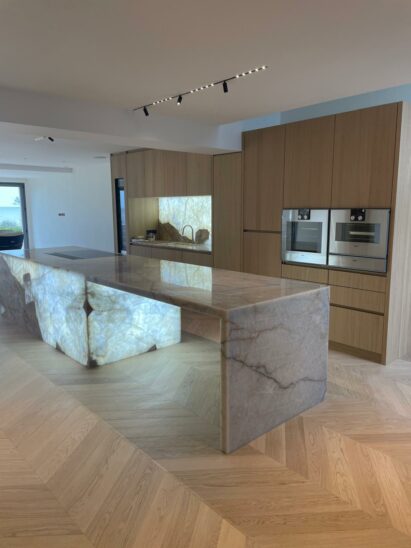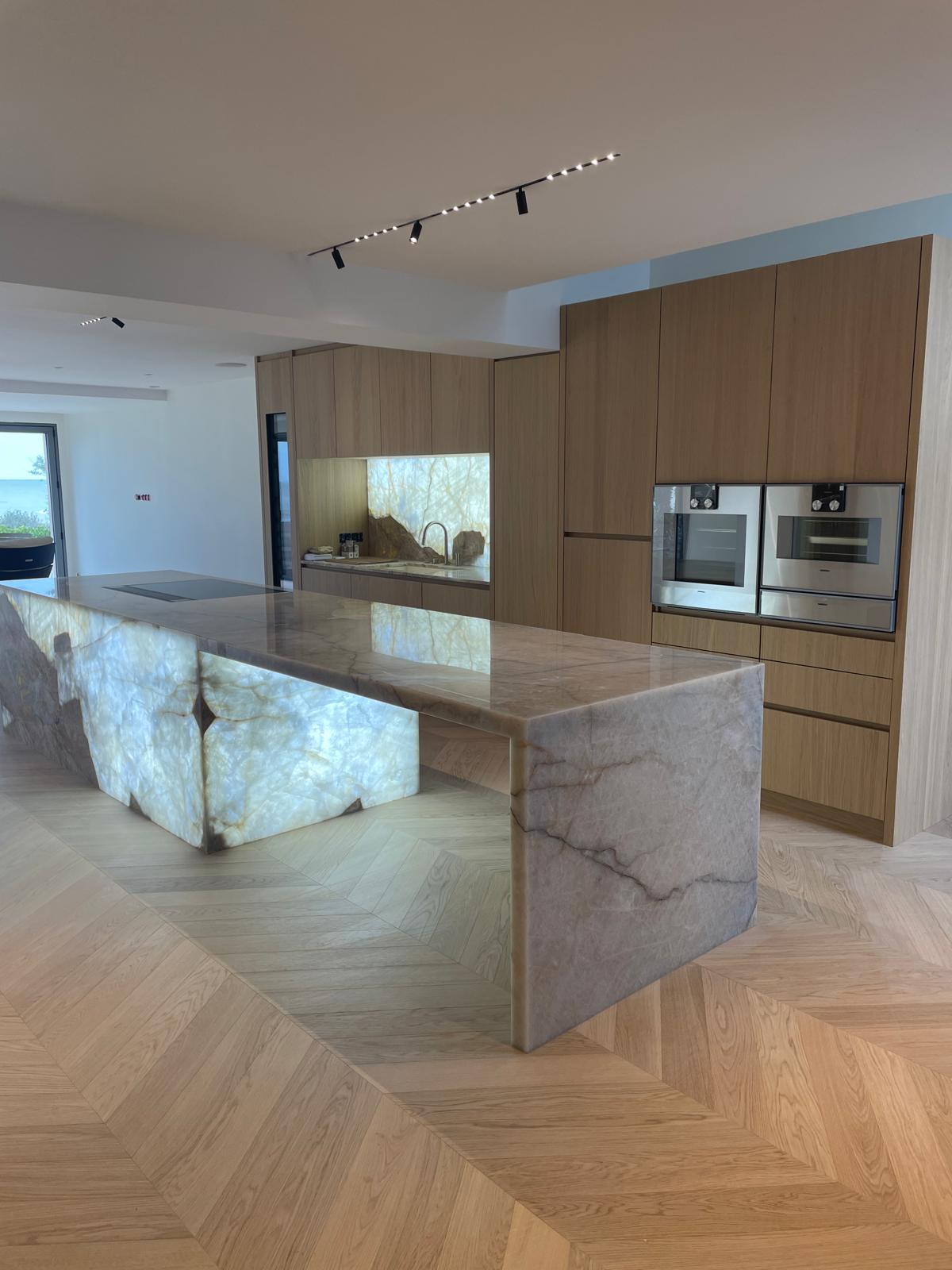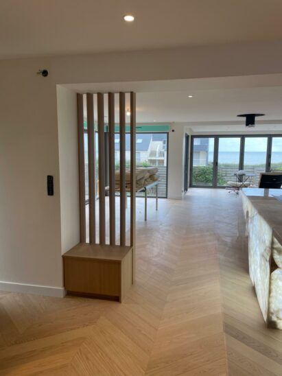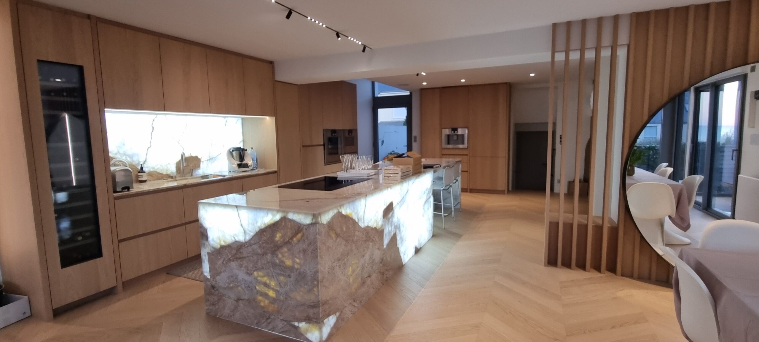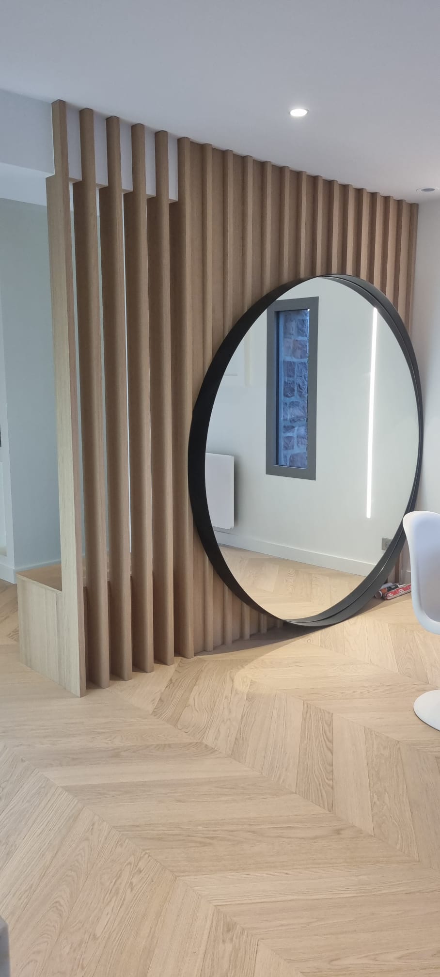 L’ensemble du rdc entièrement rénové, se veut moderne et contemporain, associé au parquet bois pose pointe de Hongrie, apportant douceur et une beauté authentique.